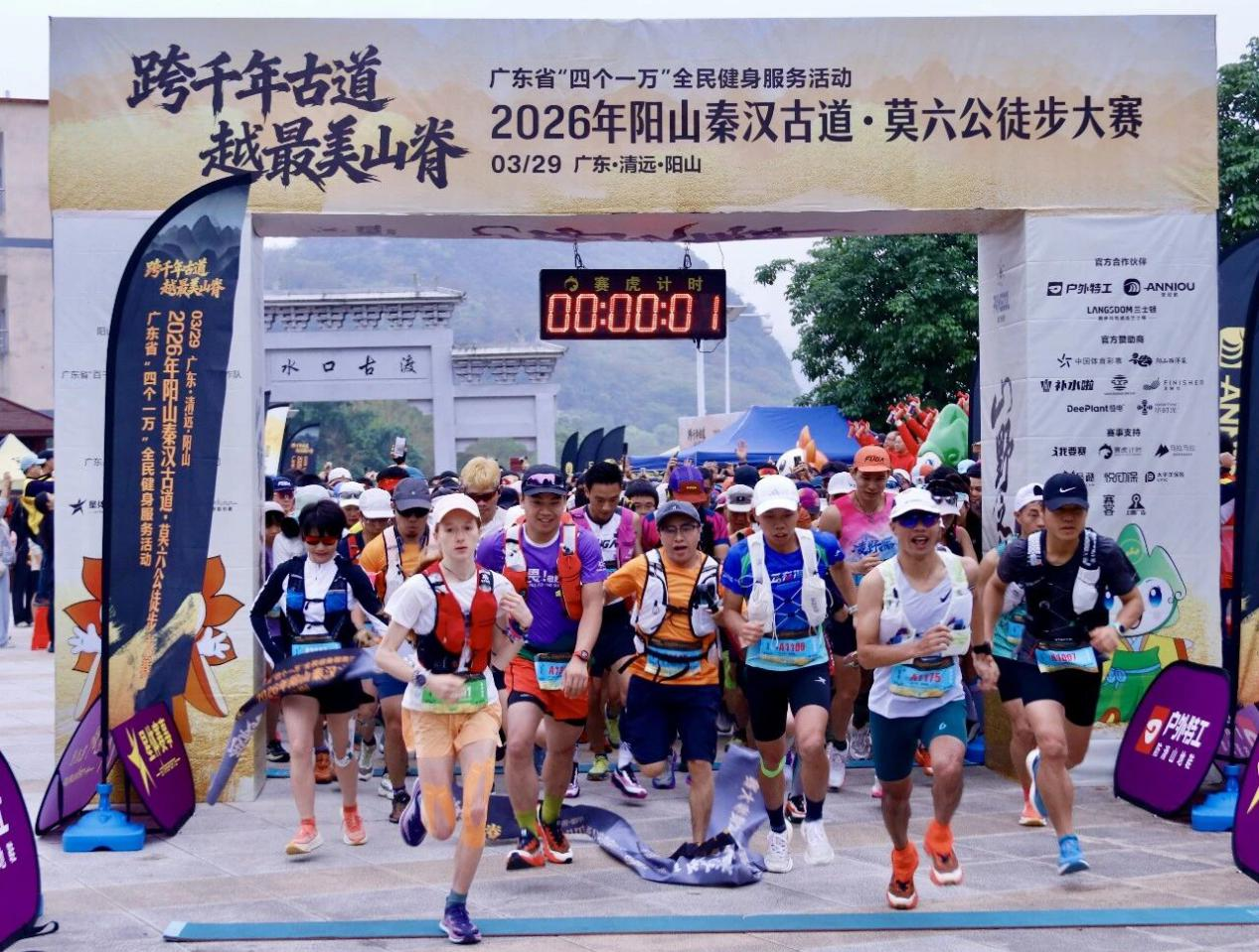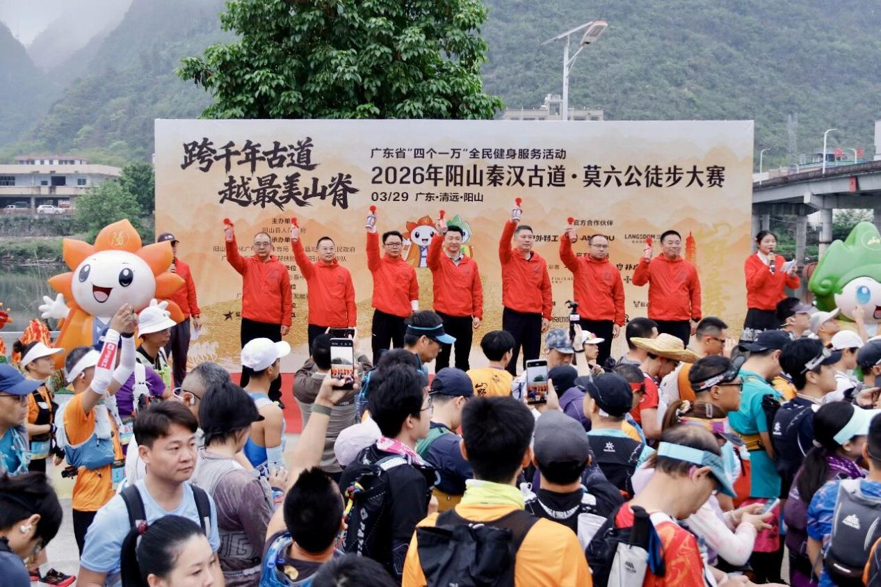 春风拂古道,健步向山脊。3月29日,广东省“四个一万”全民健身服务活动2026年阳山秦汉古道·莫六公徒步大赛在阳城镇水口亲水广场开赛。来自全球各地的600名徒步爱好者齐聚山水间,踏着千年古道的历史足迹,穿行于青山绿水之间,用脚步丈量阳山生态之美,用运动点燃全民健身热情。